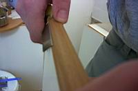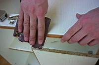 V kolikor rob na kateri strani ni raven, neravnine enakomerno obrežemo s tapetniškim nožem.