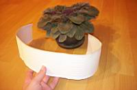 Iz valovite lepenke, katerih barvna izbira je zelo velika, odrežemo trak širok kot je višina lonca in malo daljši kot je njegov obseg.