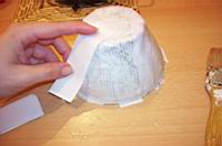 Papir, ki ga namoèimo v lepilu, nalagamo v plasteh èez posodo.