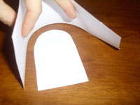 Najprej bomo naredili kapo. Odrežemo pravokotnik, ki je na eni strani zaokrožen.