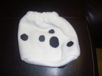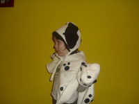 Za dalmatinca potrebujemo 70 cm belega flisa in 10 centimetrov črnega. Naredili ga bomo zelo preprosto, tako, da ne potrebujete veliko šiviljskega znanja.