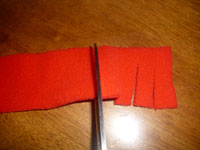 Tanjši trak flisa druge barve-najboljša je rdeča, narežemo kot resice.