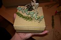Pokrov ĹĄatuljice poljubno okrasite (suho cvetje, ĹĄkoljke...).