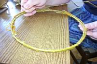 Iz vrbovih vej izdelamo obod. Z volno skupaj poveĹľemo 3 do 4 veje.