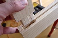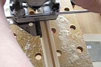 Nato na drugi deski z nadrezkarjem izdelamo prilegajoèo luknjo. V naťem primeru je ťiroka 12 mm .