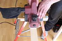Preden nadaljujemo z delom sestavimo vrata in jih pomerimo na mestu. Ker nobena stena ni popolnoma ravna in mere desk vselej nekoliko odstopajo predlagam, da si naredite izmero preostanka širine, ki je bil namenjen za podboj. Mero vzamite po celotni višini vrat in sicer na vsakih 10 cm. Mere si zapišite na list, da jih boste lahko potem prenesli na podboj. Nato desko za podboj posnamite z elektriènim oblièem do zarisanih mer - upoštevajte širino šarnirja.