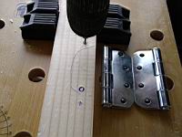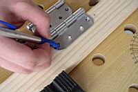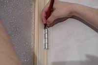 Na okvir in podboj zarišemo mesto kamor bomo pritrdili šarnirje.