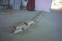Najprej mesto kjer bo šank stal dobro očistimo (tla pometemo). Potem "na suho" postavimo nekaj zidakov tam kjer smo si šank zamislili. Ĺ ank oblikujemo po lastnih Ĺľeljah. V našem primeru smo desni konec šanka (gledano izza šanka) rahlo zavili v lok.