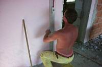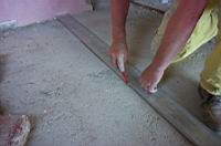 Ko smo zarisali pravokotno èrto na steno odstranimo zidake in èrto zarišemo še na tla. Enako storimo s polkrogom na drugem koncu šanka. Pripravimo pol samokolnice malte: v mešalec damo 12 lopat presejanega peska in 4 lopate cementa. Mešanici dodamo vodo tako, da postane zmes "mastna" - bolj suha kot tekoèa.