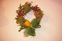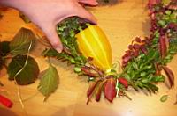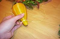 Na kocu pa na venec pritrdimo še okrasno buèko. Najprej jo s spodnjim koncem nanj zavežemo in...