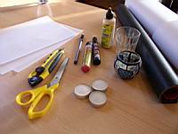 Potrebovali bomo kozarec, valovito lepenko, paus papir, sveèke-luèke, škarje in nožek ter nekaj flomastrov.