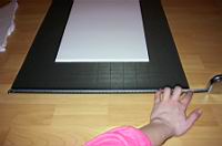 Na valovito èrno lepenko velikosti 50x70 cm na sredino položilte bel šeleshamer in izmerite, èe je z vsake strani enako oddaljen.
