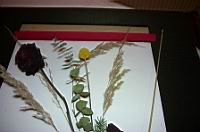 Na tako dobljeno podlago položite suho cvetje in si skušajte oblikovati sliko. Cvetja ne lepite, dokler niste zadovoljni z obliko.