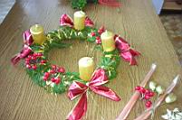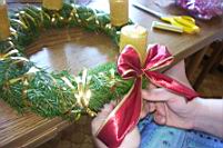 Material: - vrbove veje - smrekove veje ali - pušpan - volna ali vrvica - okrasni trak - sveèe - pentlje - žeblji |