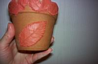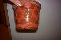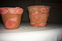 | In tako izgledata lonca, ko je glina že skoraj suha. Liste na manjšem loncu ali zvezde na veèjem, lahko po želji tudi pobarvamo. V tem primeru je morda bolje, da kupimo belo glino in ne rjave kot v našem primeru, saj jo bomo lažje pobarvali. Prav tako lahko za veèjo uèinkovitost in lepši izgled prebarvamo tudi lonca. | ![]() |