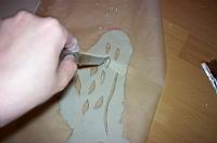 | Iz ostankov razvaljane gline z nožem izrežemo listièe. | ![]() |