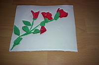 | To pa je druga slika, ki smo jo oblikovali. Naredili smo vrtnico, ki deluje kot prava, saj smo jo oblikovali, kot da smo jo na podlago položili. To po meni, da smo liste pustili, da stojijo naravnost iz podlage. | ![]() |