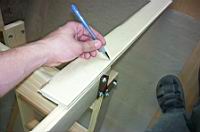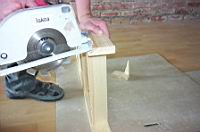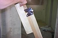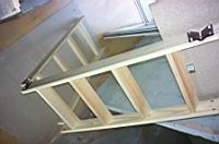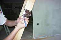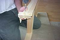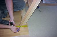 | Skrajšane dele sestavimo tako, da na nosilne deske stopnic zarišemo luknje za vijake. Ko zarisujemo moramo paziti, da so deske poravnane, drugaèe pregib ne bo pravi. | ![]() |