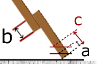 | Rez opravimo tako, da dolžini B odštejemo dolžino A in prenesemo kot, ki smo ga zarisali na spodnjem kraju nosilne deske stopnic na novo zarisano mero C. | ![]() |