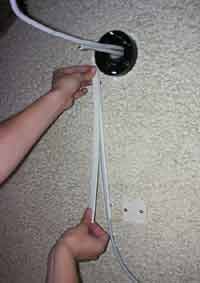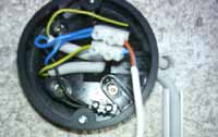 Ko smo žice povezali prikljuèimo še svetilko. Èe želimo lahko vmes vežemo še stikalo. V tem primeru lahko svetilko enostavno ugasnemo, ne glede na zunanje vplive. (veza med èrno dovodno žico in senzorjem). |