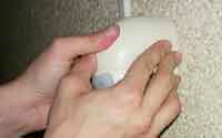| Ko smo to storili, lahko zaènemo. Najprej oznaèimo mesto, kamor bomo postavili svetilko. Na fasado zarišemo toèke kjer bomo izvrtali luknje za vijake. V našem primeru smo za oznaèevanje uporabili kar žebelj in kladivo. Èe vaša svetilka ni popolnoma okrogle oblike je smiselno uporabiti vodno tehtnico, da bodo toèke poravnane s tlemi. | ![]() |
