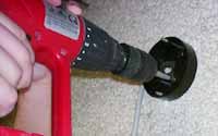 | Z vrtalnikom izvrtamo lukje za èepke, ki jih bomo vložili. Priporoèen premer (debelina svedra) je 8mm ali 10mm. | ![]() |