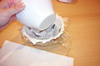 | Za manjše lonce je dovolj, èe naložimo 7 ali 8 plasti papirja. Izdelek vzamemo s kalupa, ko je papir še rahlo vlažen, saj ju tako lažje razdružimo. | ![]() |