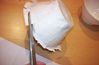 | Èez lonec lahko najprej namestimo folijo, ki jo prav tako namažemo s kremo ali vazelinom. Pri nanašanju plasti papirja ne potrebujete èopièa, najlažje si pomagate kar z rokami. | ![]() |