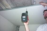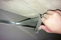 | Sedaj na prej doloèeni dolžini izvrtamo luknje, vstavimo PVC vložke in privijemo direktna obešala. Direktno obešalo je dolžine 120mm zato omogoèa neposredno vlaganje izolacije med strop in mavèno plošèo. | ![]() |