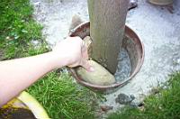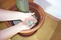 | Ker je okrasni lonec precej veèji od lonca v katerem je deblo, za veèjo stabilnost razmah med njima napolnimo s peskom. | ![]() |