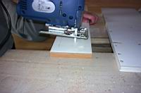 | Z vrtalnikom izvrtamo luknje znotraj zarisanega pravokotnika in z vbodno žago izrežemo plošèo. | ![]() |