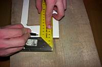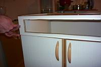 | Odmerimo in zarišemo mesto, kjer bomo odrezali vrata elementa. Mera je enaka višini nove plošèe, ki smo jo izdelali dva koraka nazaj. Višini lahko dodamo en do dva milimetra, da se bodo vrata lažje zapirala. | ![]() |