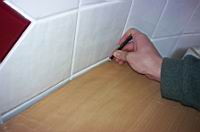 | Ko smo pravilno odrezali rob pulta in namestili nanj robni trak, se lotimo izreza za steklo-keramièno plošèo. Na karton si zarišemo mere in... | ![]() |
