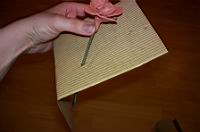 | Na zunanjo stran položimo vrtnico in si s prstom oznaèimo mesto, kjer bomo naredili luknjico za steblo. | ![]() |