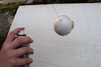| Sedaj stiroporno kroglico namažemo z lepilom. Lepilo naj bo tekoèe, vendar naj ne vsebuje topil, sicer bo stiroporno kroglico poškodovalo. | ![]() |